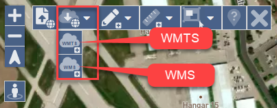 Within VuMap, users are able to connect with external data services that can be uploaded and saved in to VuMap’s interface. VuMap provides a comprehensive user experience where both WMTS and WMS interfaces can be layered with existing data. The dropdown menus for either WMTS or WMS services can be found within the toolbar at the top of the page.